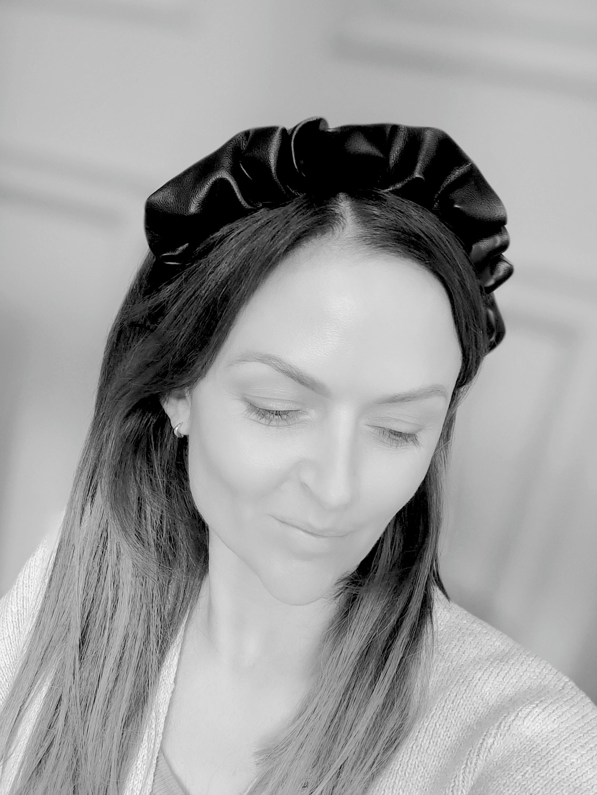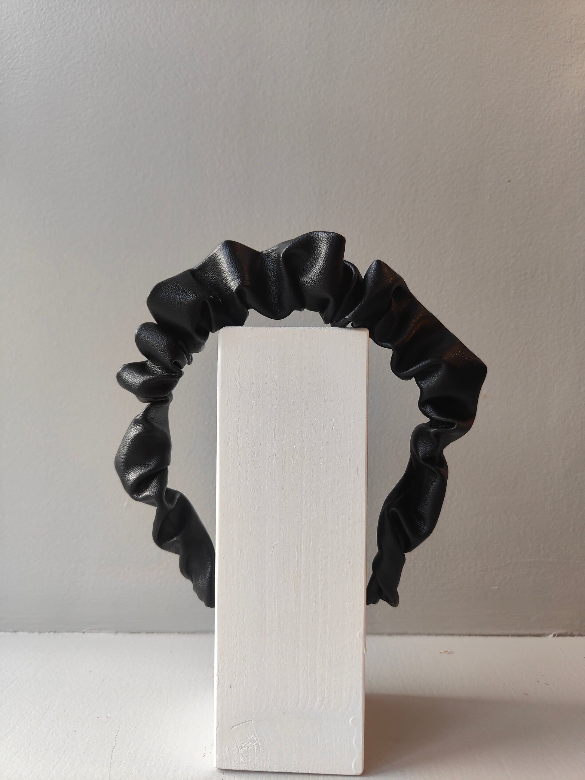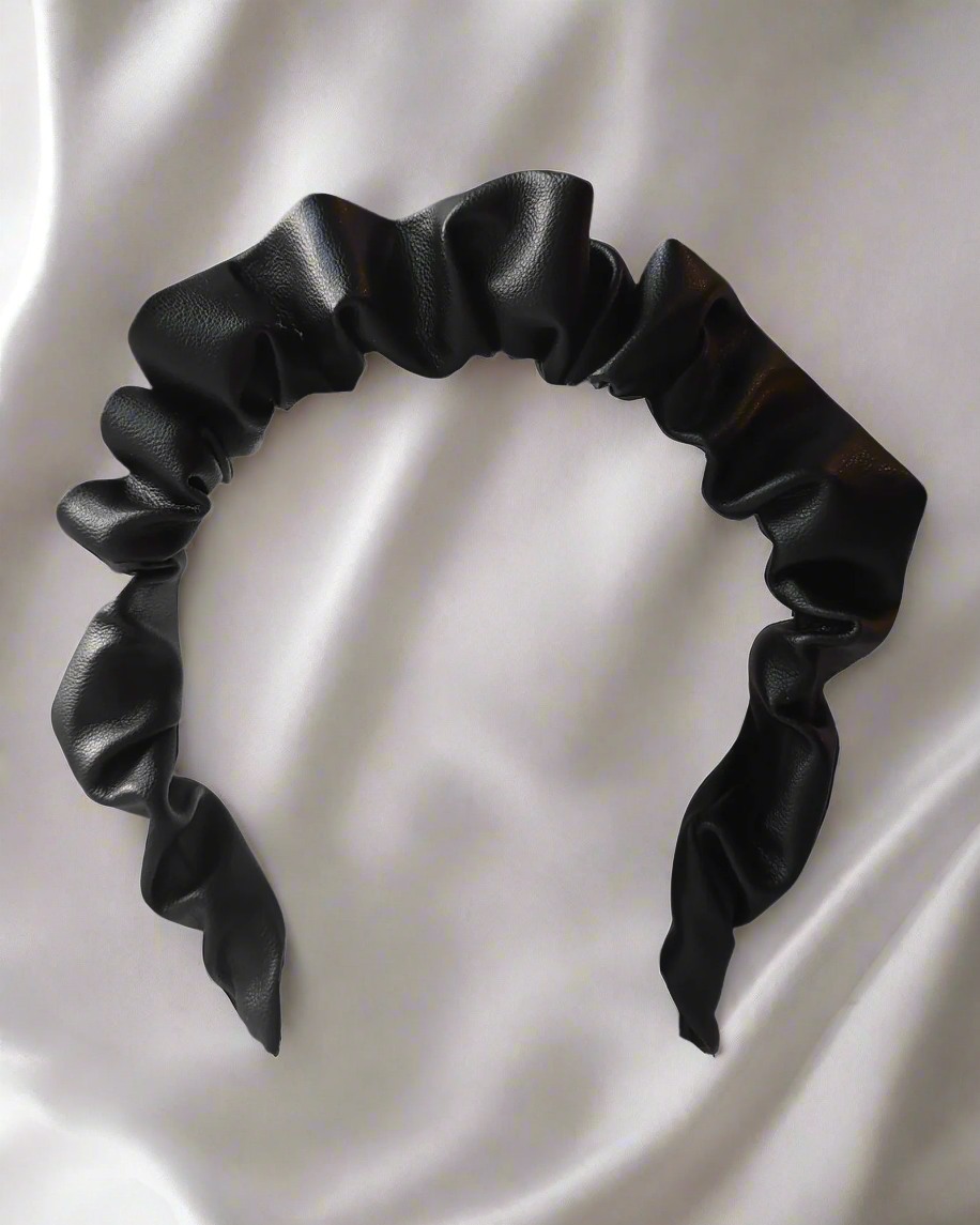 Ceannbhanda ruffle leathair Petite Dubh - - ☘ DEARADH NA HÉIREANN