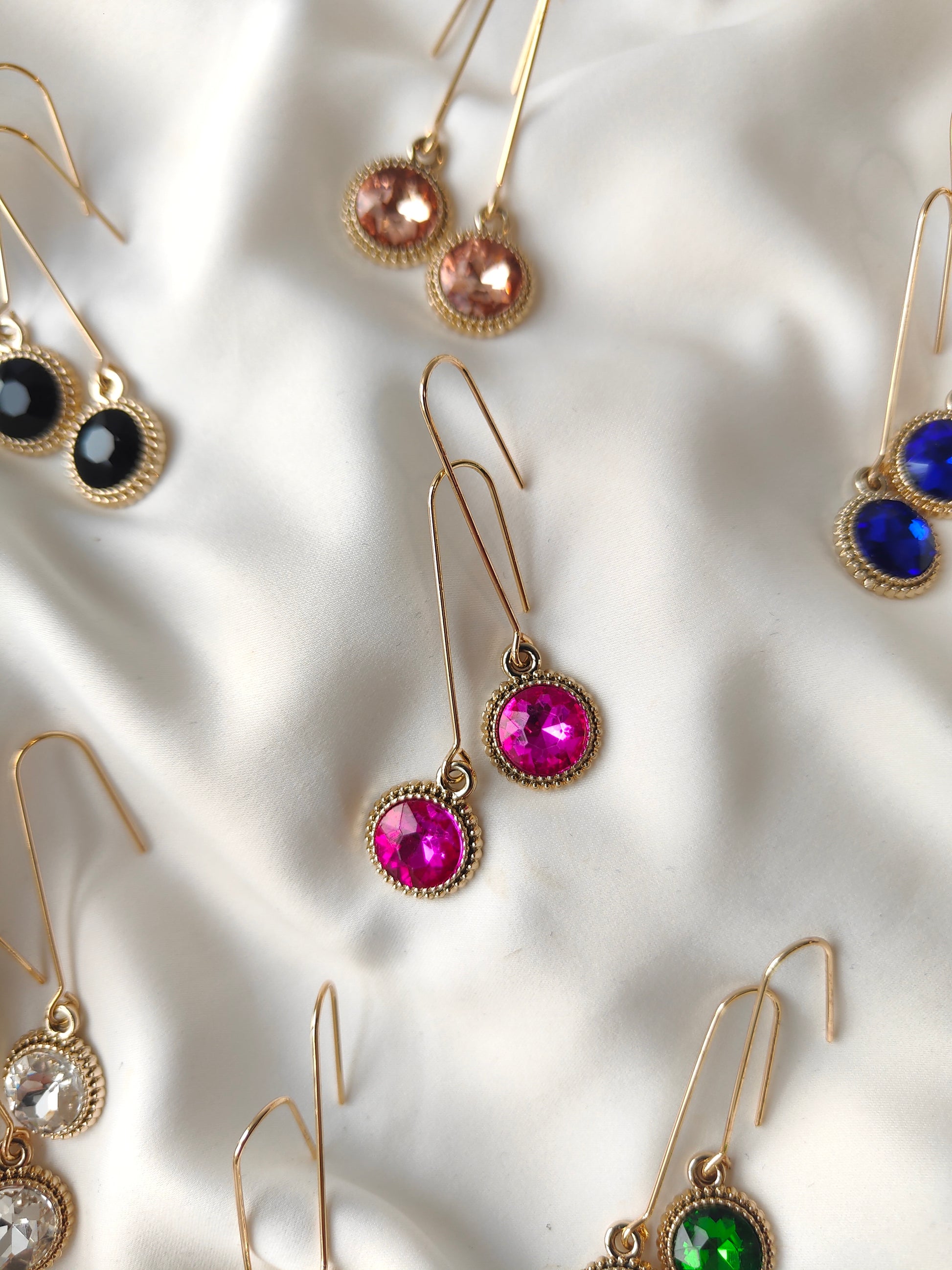 A set of statement crystal drop earrings, a classic choice with a contemporary twist.