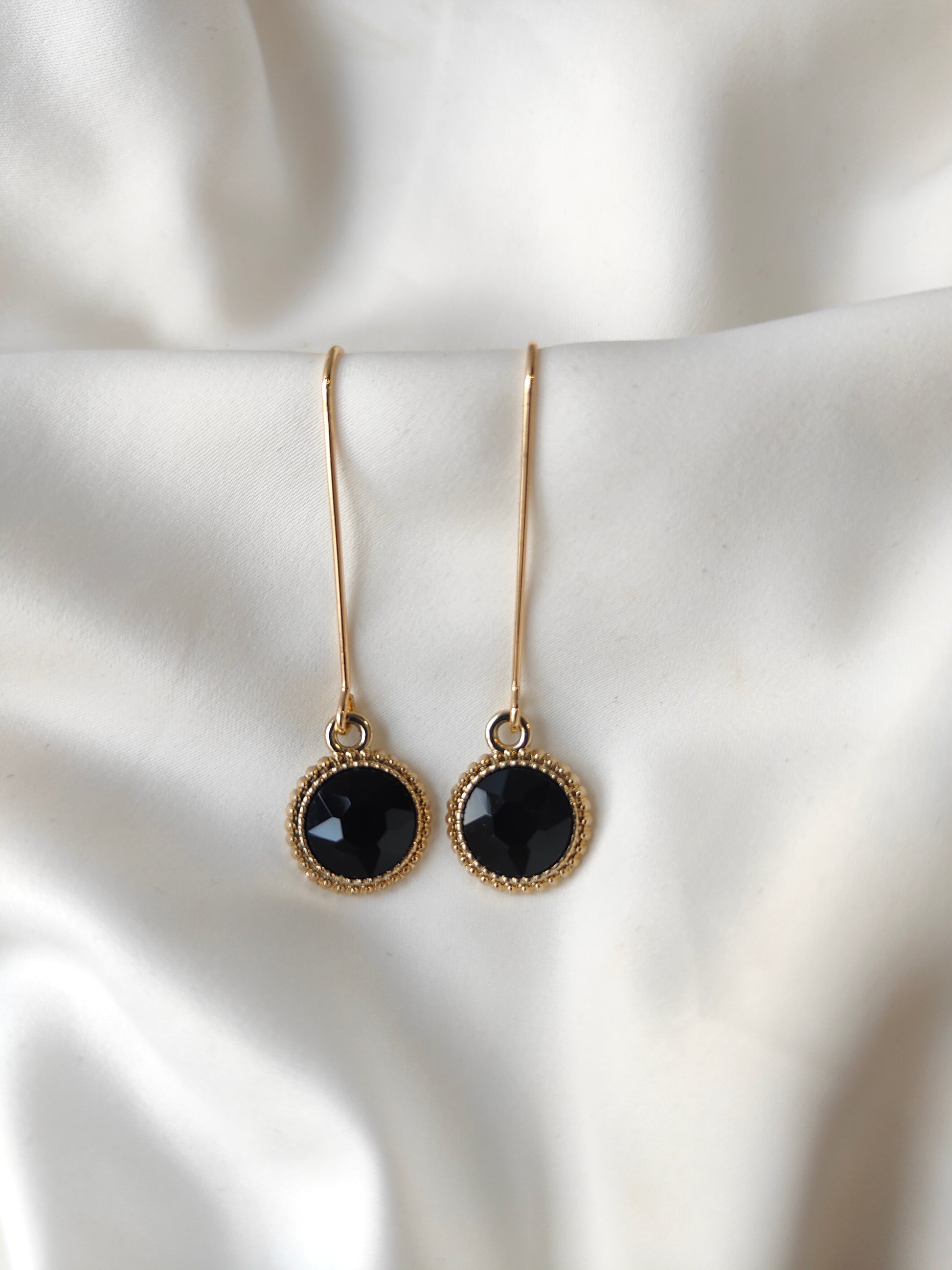 Connie - Crystal Gem Drop Earrings - Gold / Black