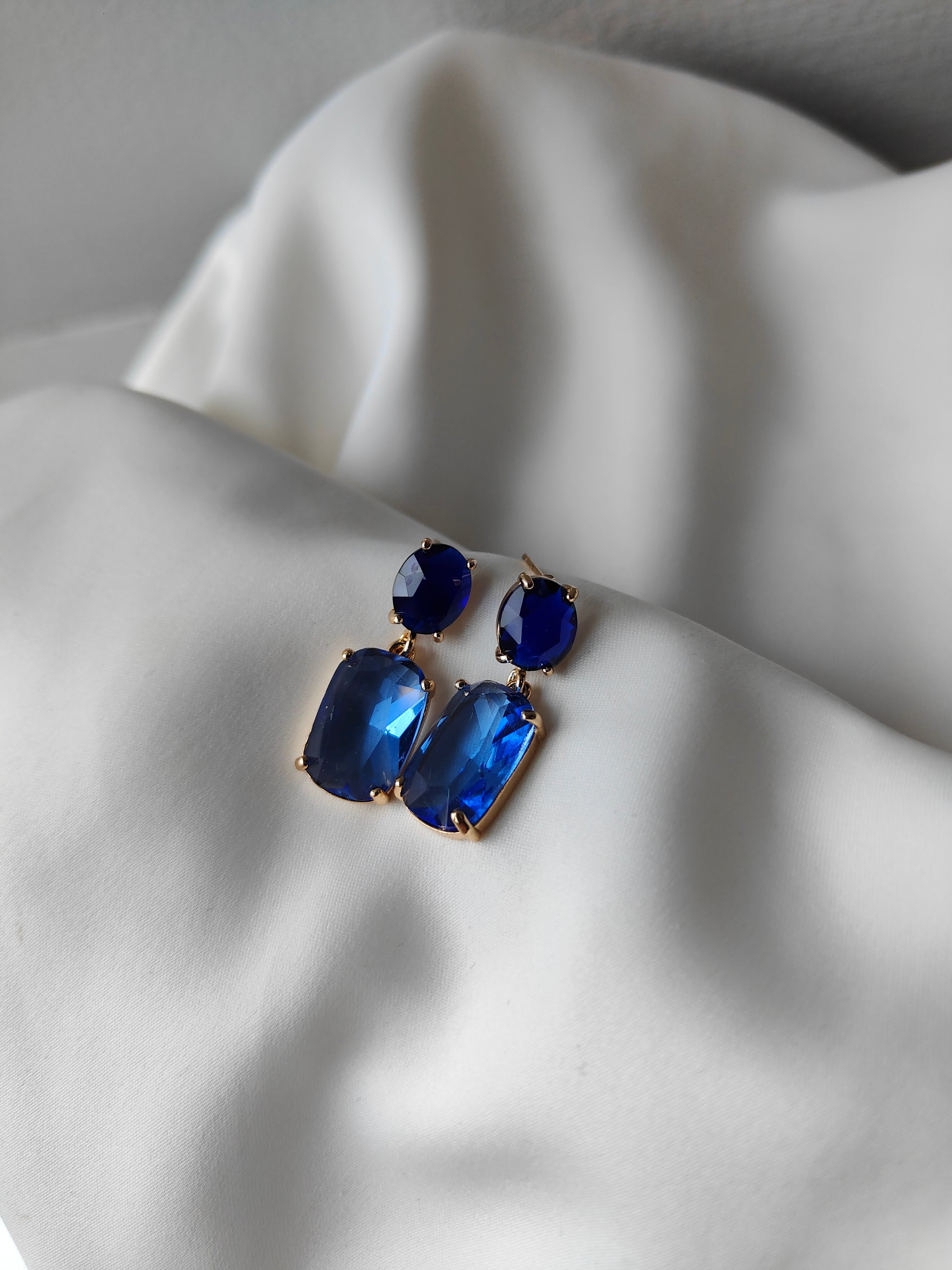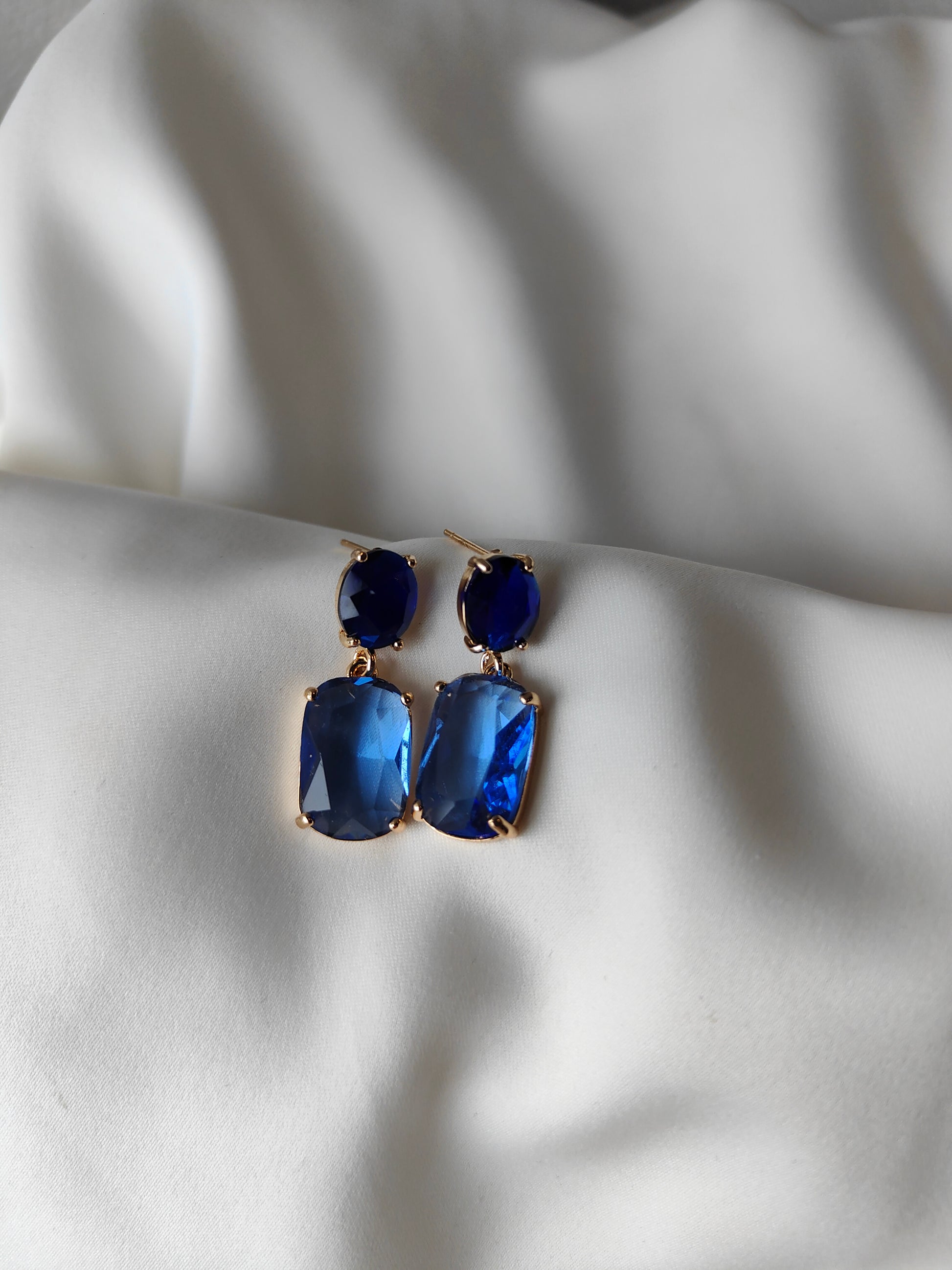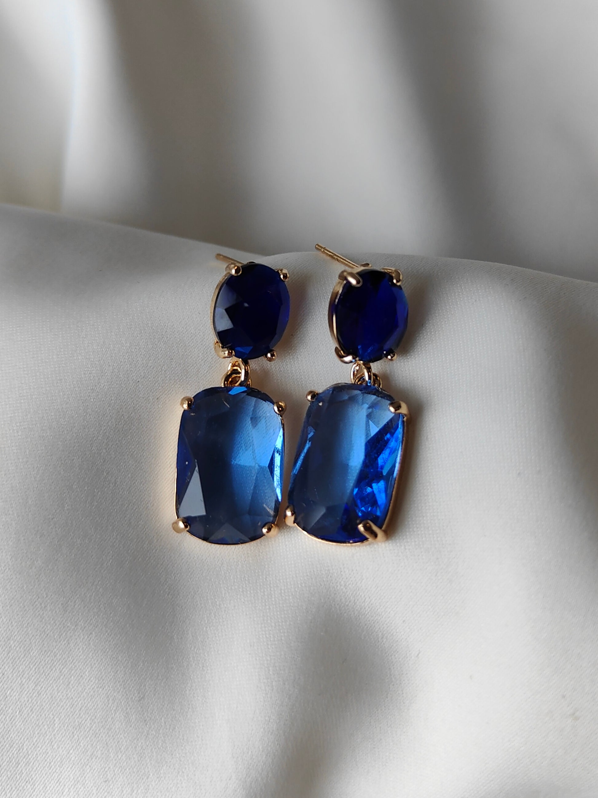 An oval crystal stud featuring a faceted rectangular drop gem below. These classic beauts are the perfect finishing touch.