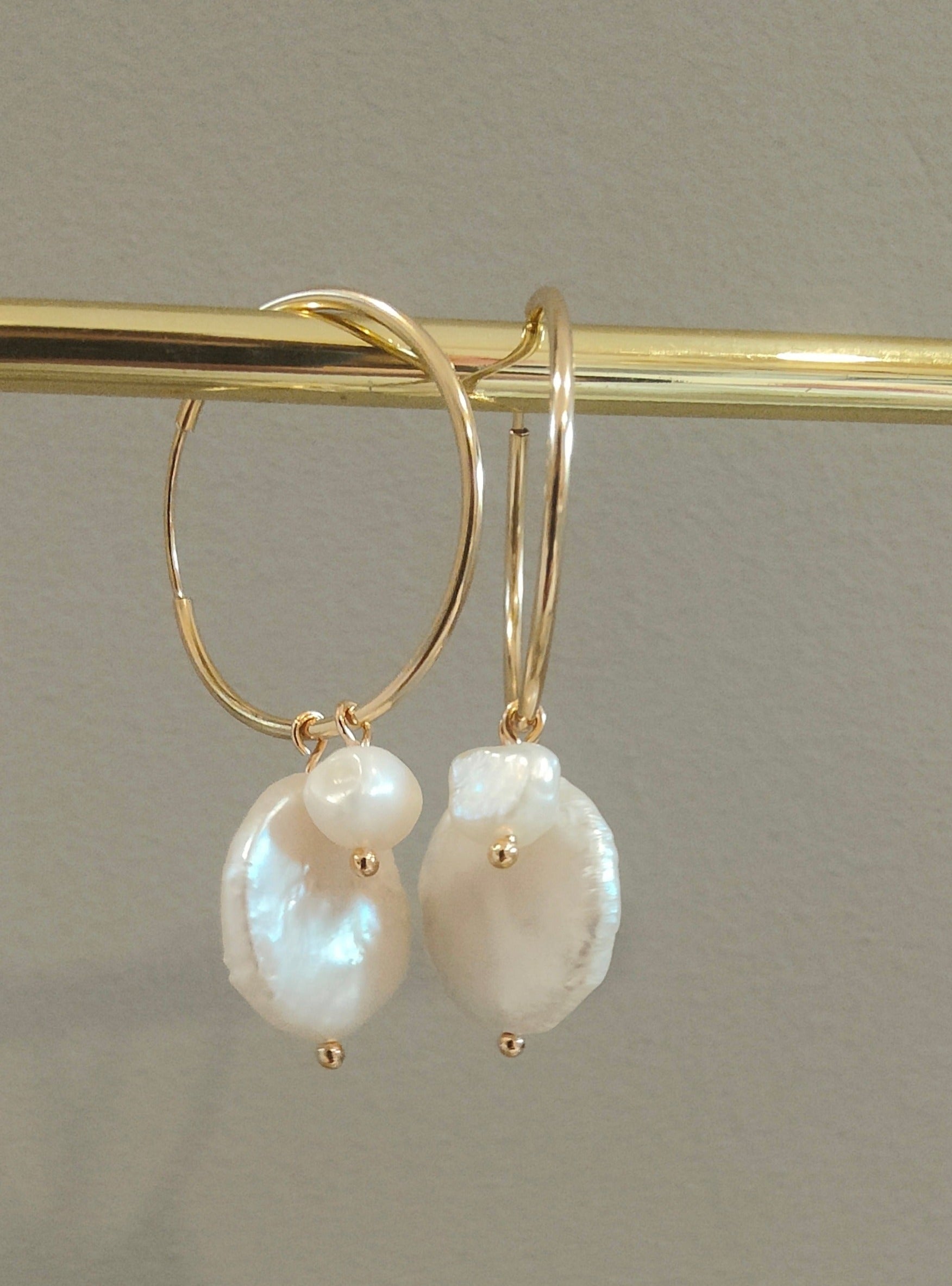 GRETCHEN - Natural Pearl Hoop Bridal Earrings