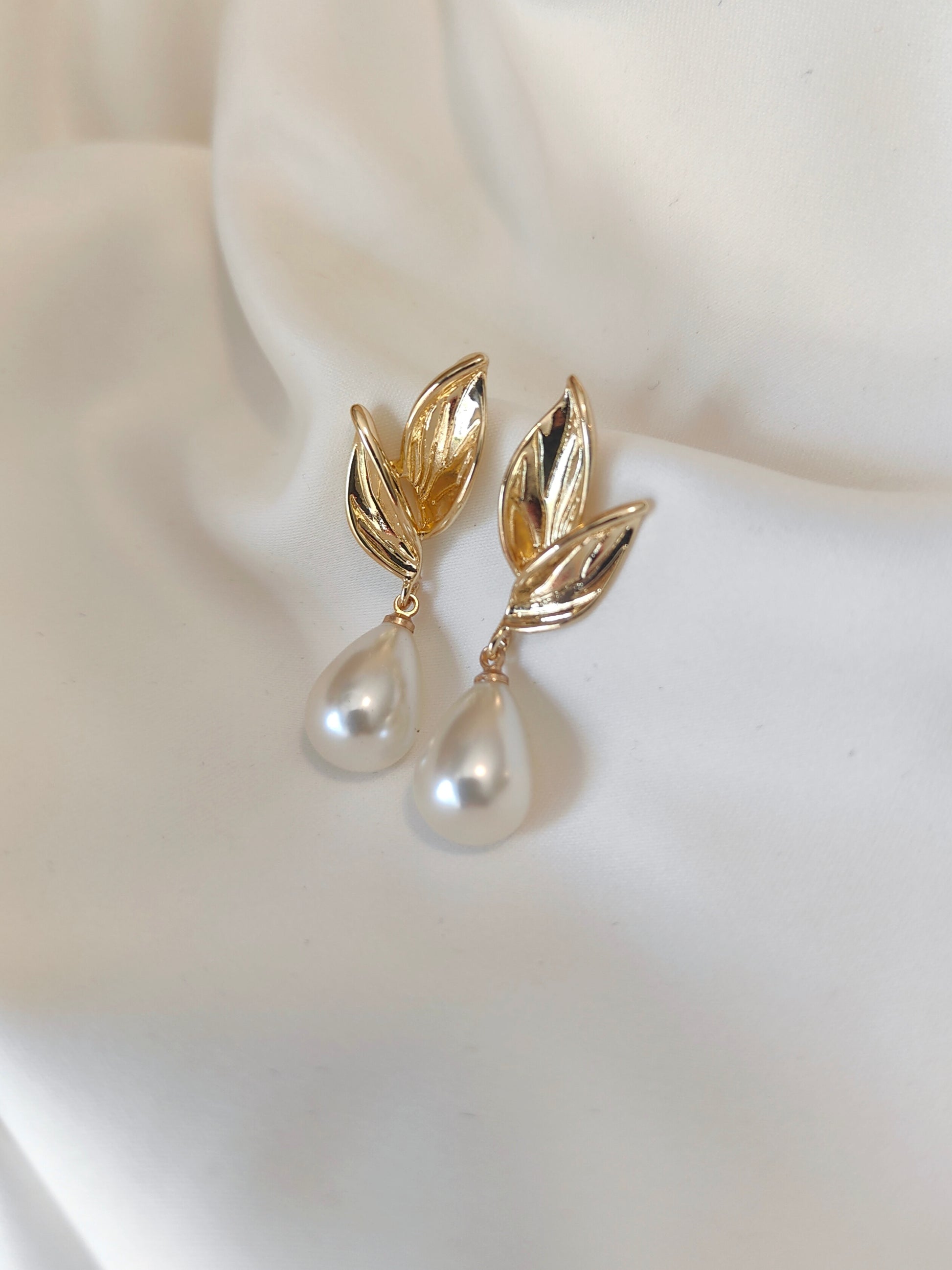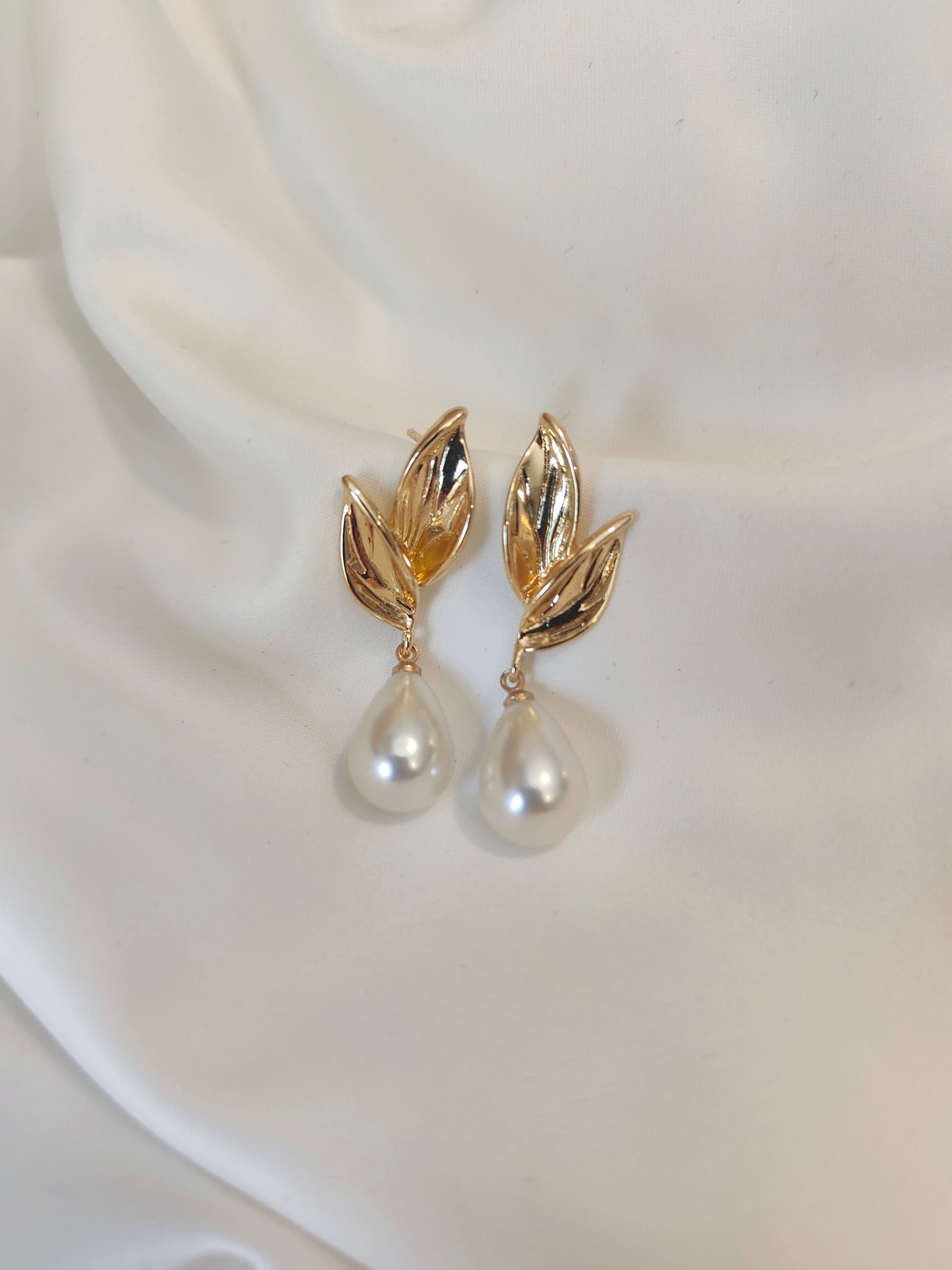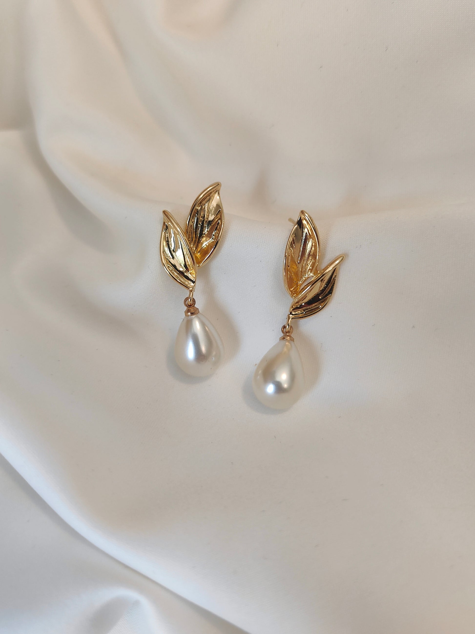 A set of gold floral earrings perfect for the Bride.