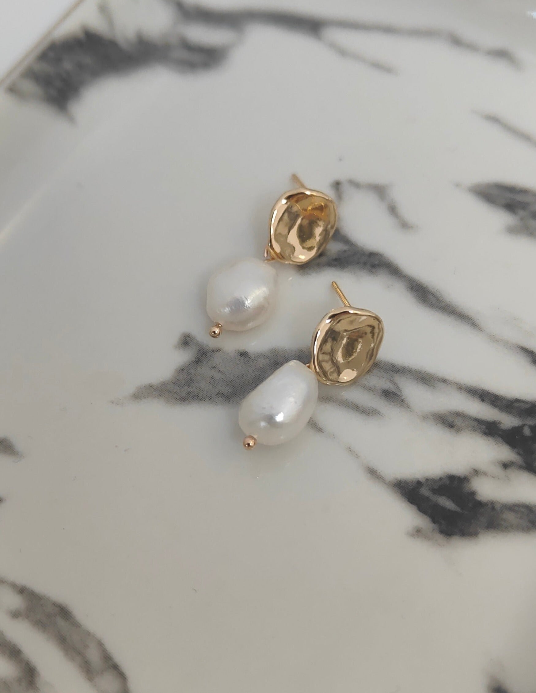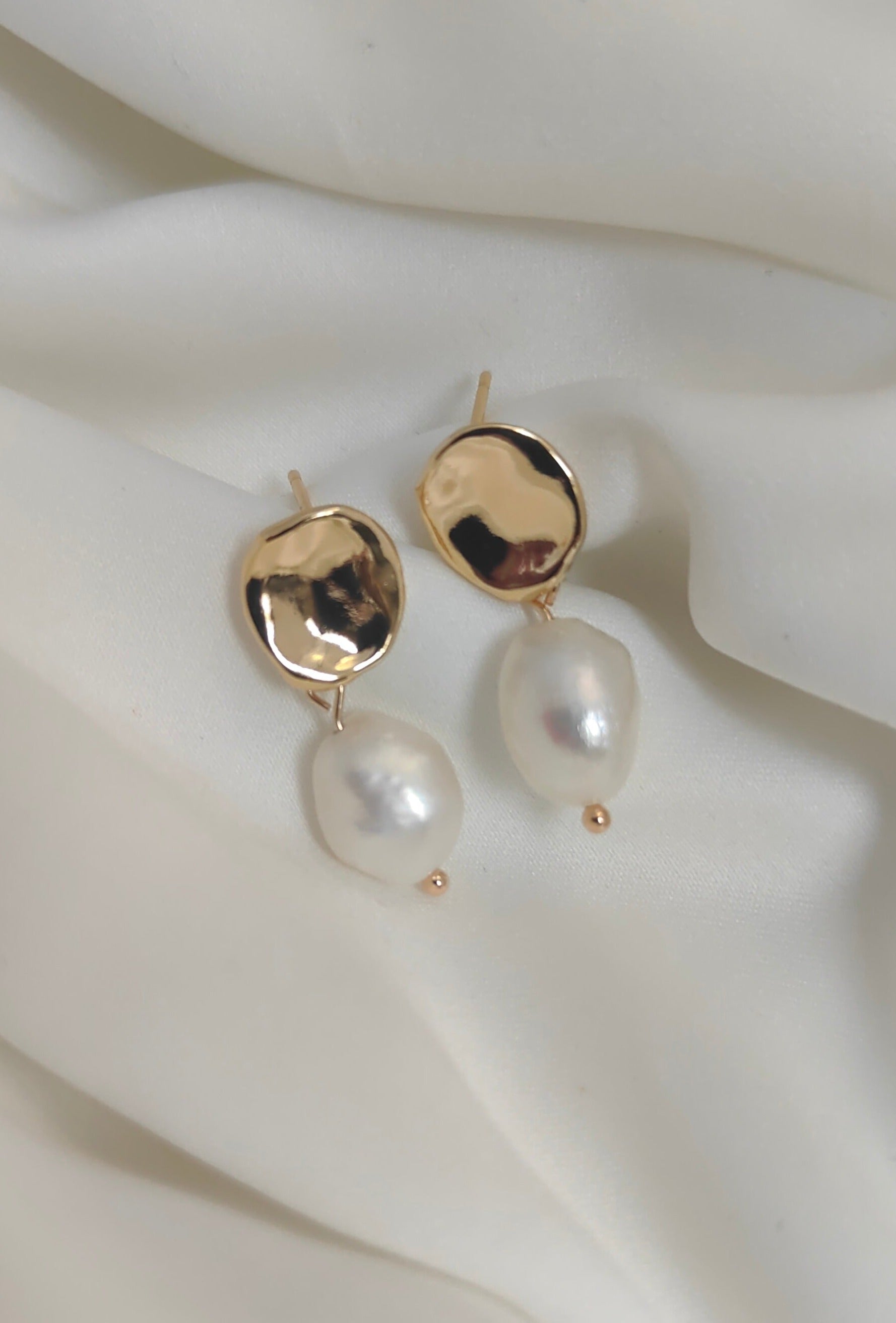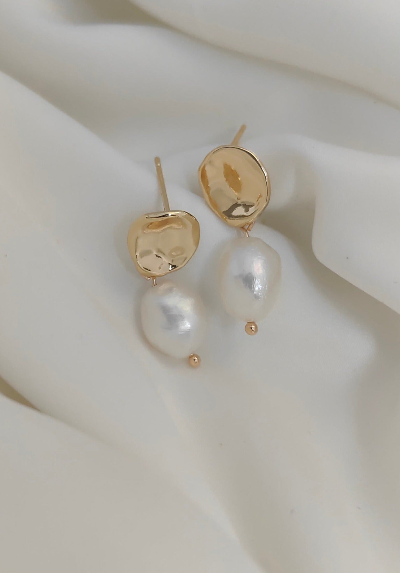 MOLLY - Statement Pearl & Gold Bridal Earrings