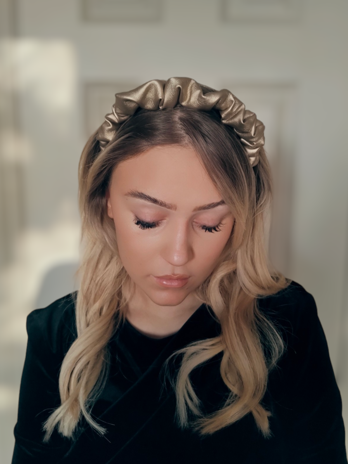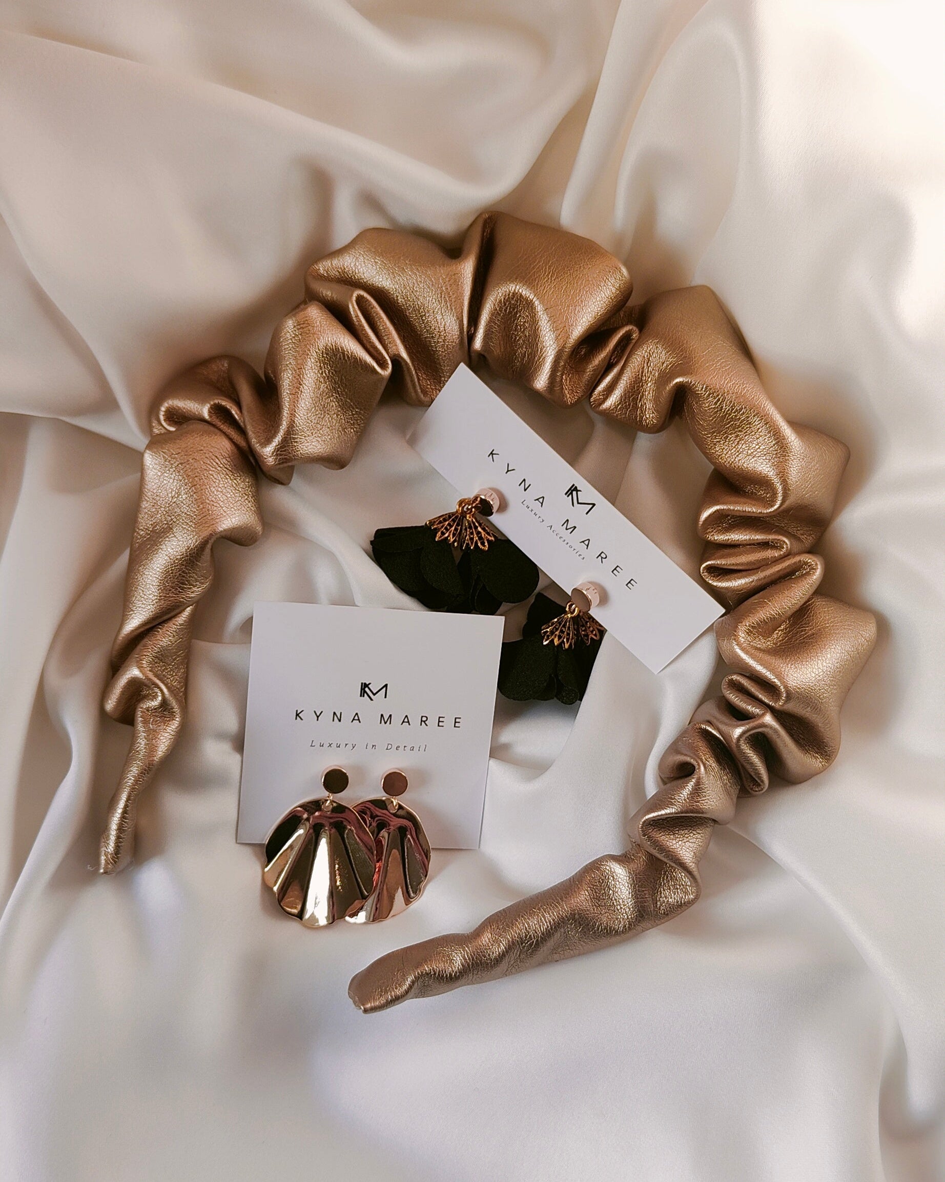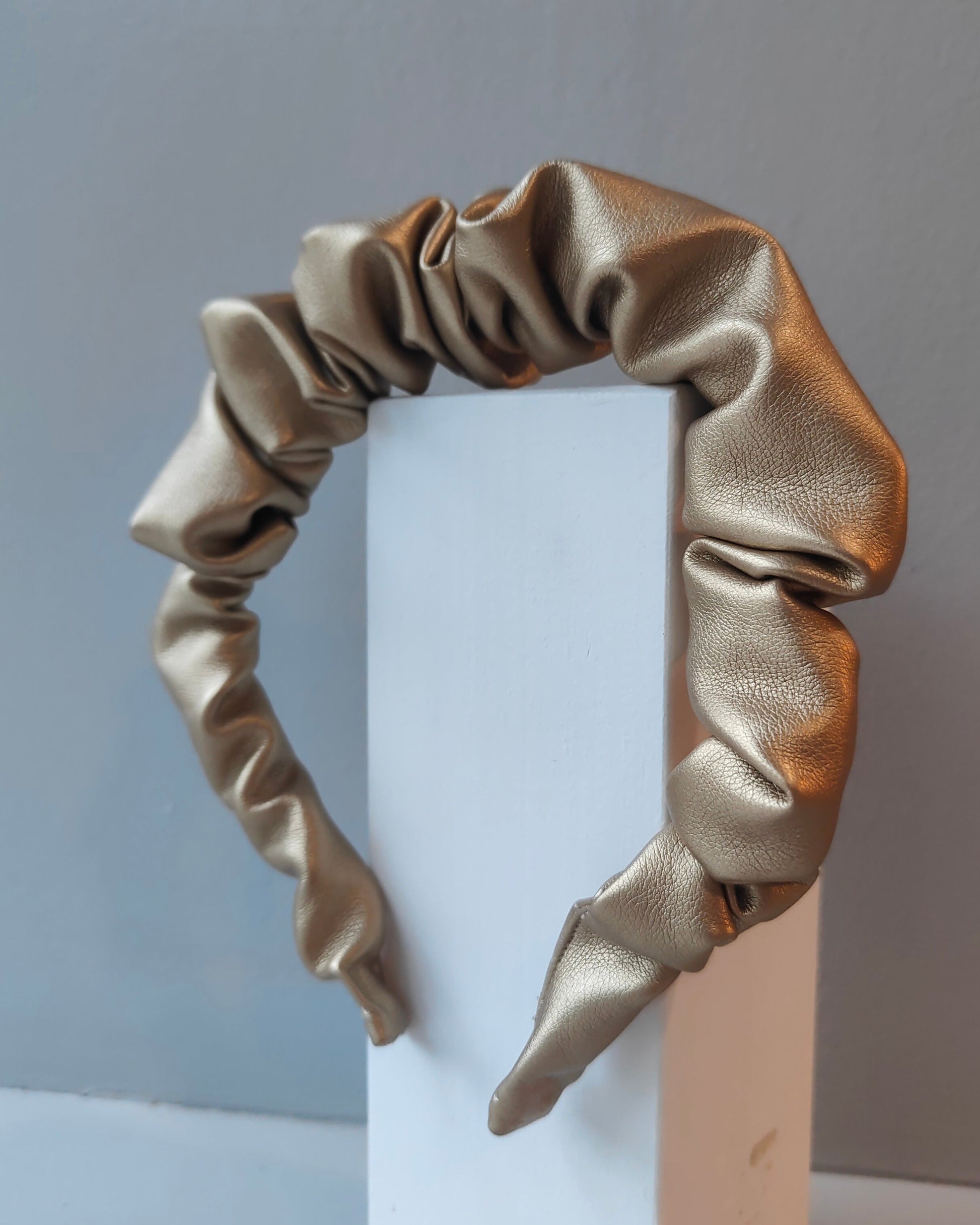 Petite Ruffle Headband - Gold Faux Leather